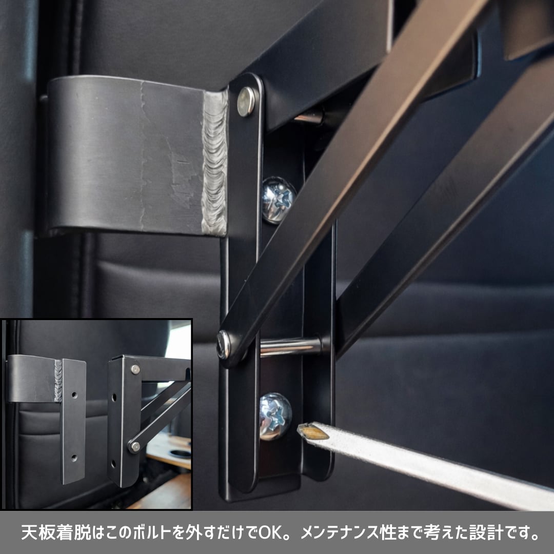 取り外しは折りたたみパーツの固定ボルトを外すだけでOK。天板側のビスを外す必要はありません。