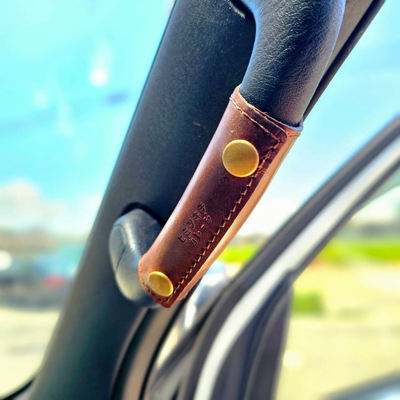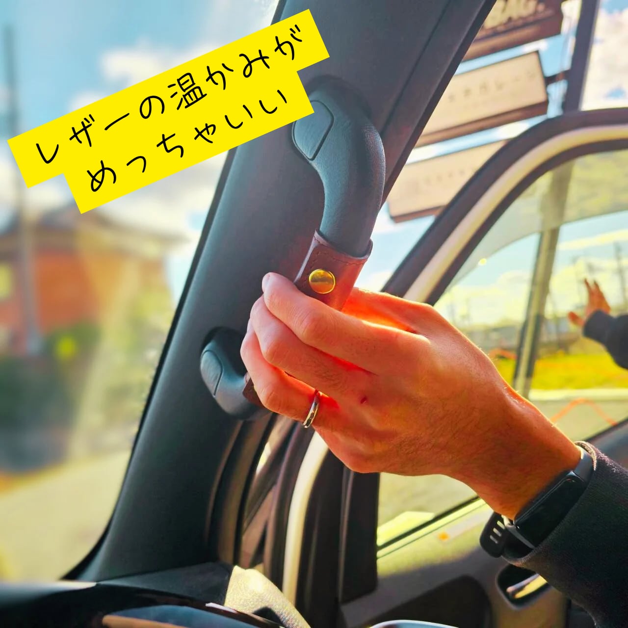 純正のアシストグリップに装着するだけで、車内の雰囲気が一気に引き締まるカスタムアイテムです。